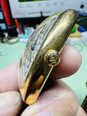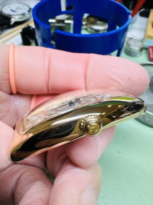 Η χρυσή κάσα έφερε έντονες γρατζουνιές και σημάδια χρήσης. Πραγματοποιήθηκε πλήρες γυάλισμα, με απόλυτο σεβασμό στις αρχικές γραμμές και καμπύλες του σχεδίου. Ο στόχος δεν ήταν η «υπερβολική λάμψη», αλλά η επιστροφή της κάσας στην εργοστασιακή της εικόνα.