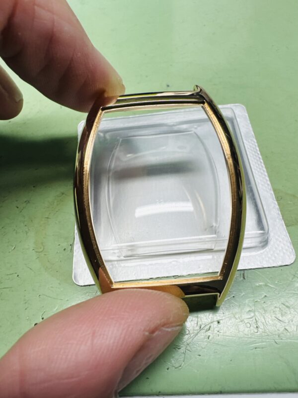 Το νέο κρύσταλλο επιλέχθηκε ώστε να ταιριάζει απόλυτα στη χαρακτηριστική καμπύλη της Curvex κάσας. Η σωστή εφαρμογή σε τέτοιες κάσες είναι κρίσιμη: ακόμα και η παραμικρή απόκλιση μπορεί να επηρεάσει τόσο τη στεγανότητα όσο και την αισθητική.