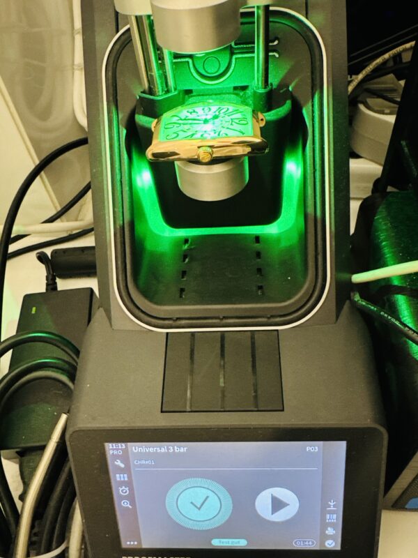 Μετά την τελική συναρμολόγηση, το ρολόι υποβλήθηκε σε έλεγχο στεγανότητας, διασφαλίζοντας ότι είναι πλήρως προστατευμένο για καθημερινή χρήση. Ο τελικός οπτικός και λειτουργικός έλεγχος επιβεβαίωσε ότι το ρολόι αποδόθηκε στον ιδιοκτήτη του σε άριστη μηχανική και αισθητική κατάσταση.