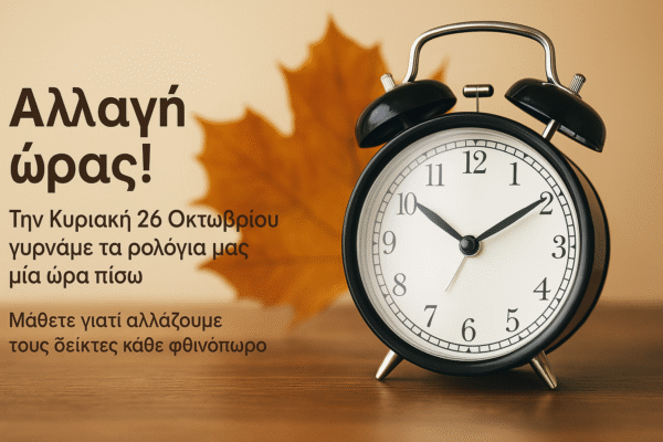 Την Κυριακή 26 Οκτωβρίου γυρνάμε τα ρολόγια μας μία ώρα πίσω. Μια μικρή αλλαγή που [...]