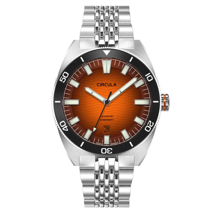 Circula AquaSport II Orange Bracelet, καταδυτικό ρόλοι που συνδυάζει αναζωογονητικό σχεδιασμό με εξοπλισμό υψηλής ποιότητας και επεξεργασία. Κάσα από ανοξείδωτο ατσάλι βουρτσισμένη στο χέρι με ατσάλινο μπρασελέ, περιστρεφόμενη στεφάνη από κρύσταλλο Σαπφείρου, πορτοκαλί καντράν με φωτεινούς δείκτες.