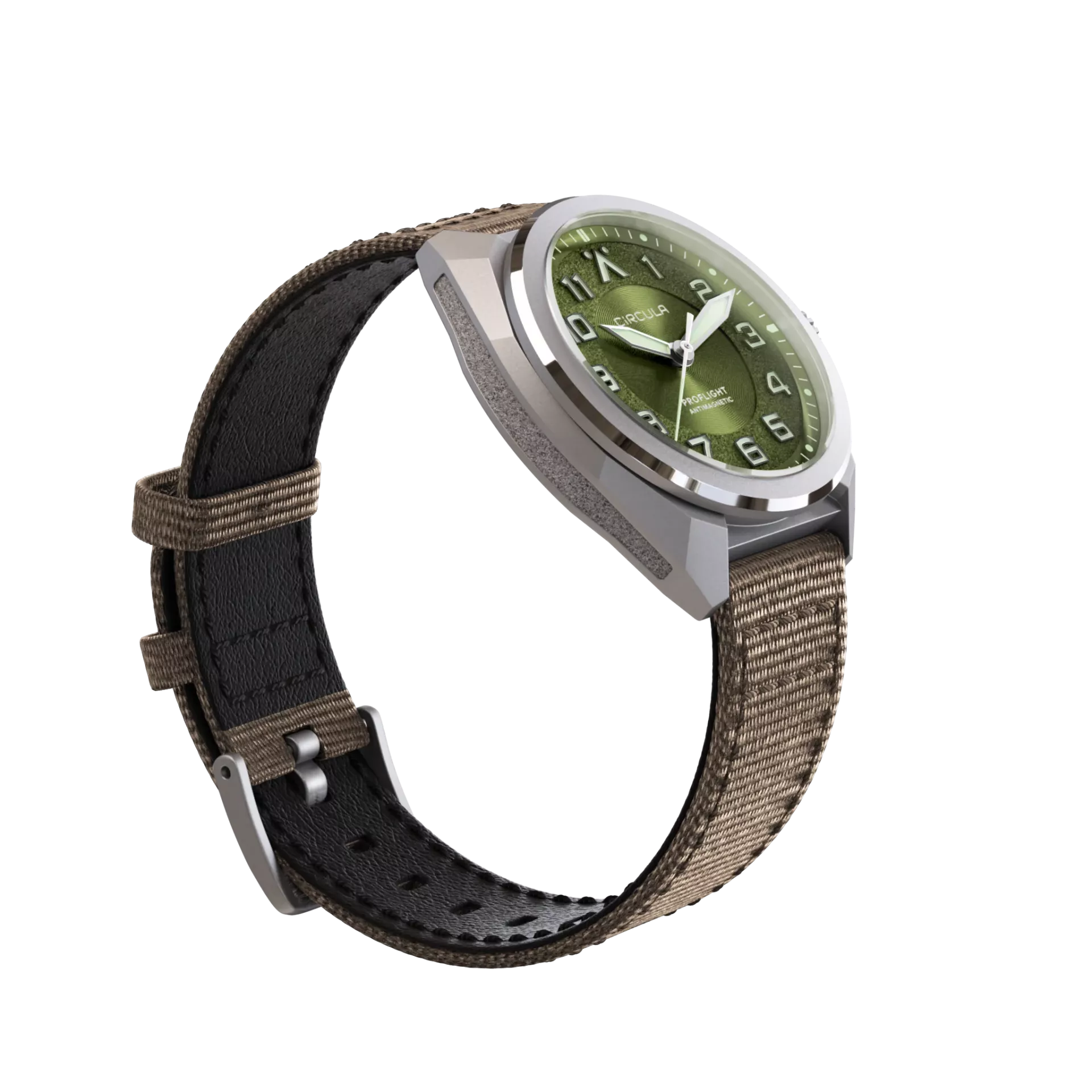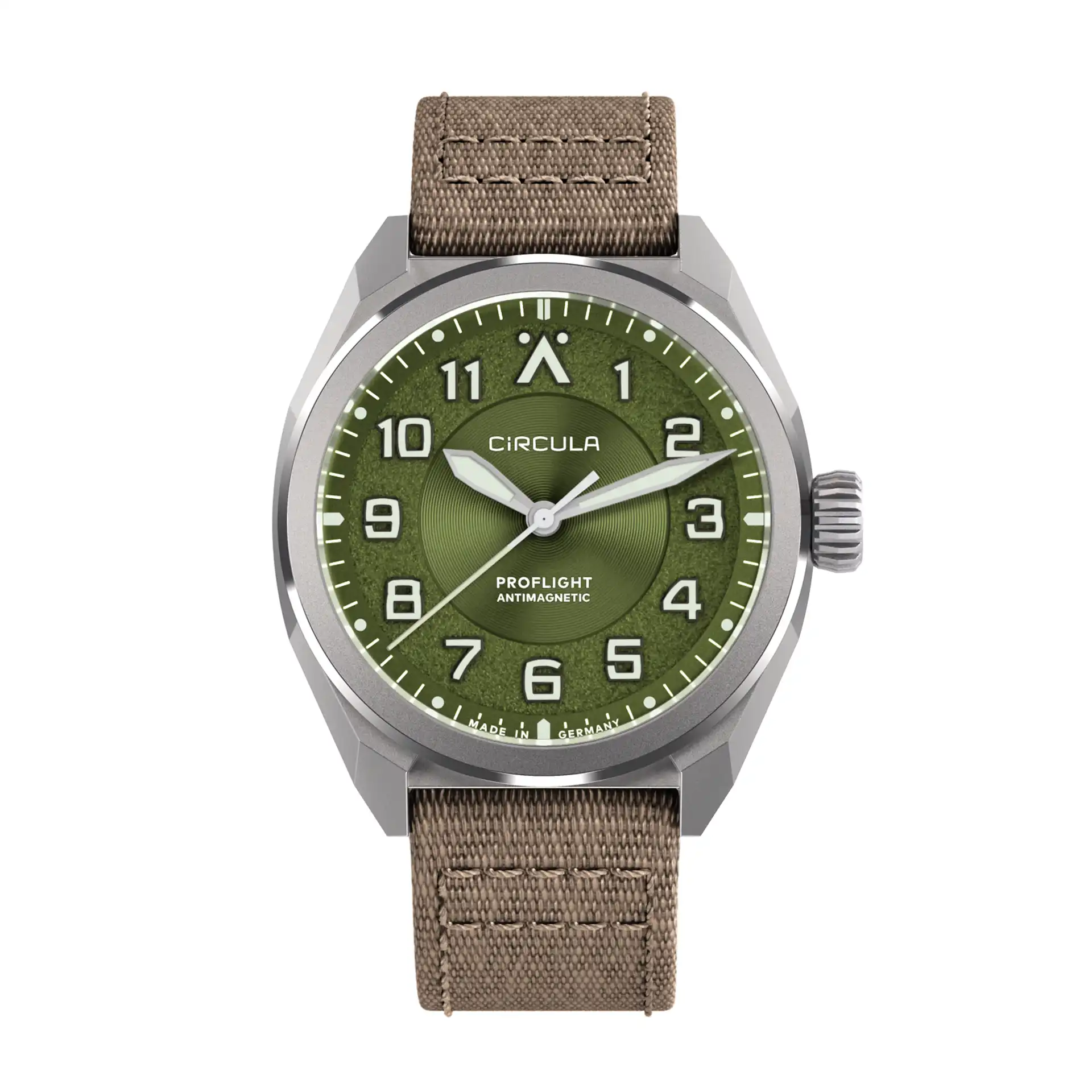 Το Circula ProFlight Green είναι ένα pilot-style αυτόματο ρολόι που συνδυάζει μοντέρνο σχεδιασμό με κλασικά στοιχεία πιλότου και γερμανική ποιότητα κατασκευής. Ένα σπορ-κομψό, καθημερινό flieger ρολόι με strong χαρακτήρα και πρακτικότητα για κάθε μέρα.