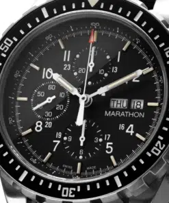 Το Marathon Jumbo Diver/Pilot’s Automatic Chronograph (CSAR) – 46mm είναι ένας καταδυτικός/αεροπορικός χρονογράφος στρατιωτικών προδιαγραφών και έχει αναπτυχθεί ως Χρονογράφος Έρευνας και Διάσωσης (CSAR). Κάσα από ανοξείδωτο ατσάλι και μεταλλικό μπρασελέ. Περιστρεφόμενη στεφάνη και μαύρο καντράν με σωλήνες αερίου Τριτίου και MaraGlo.