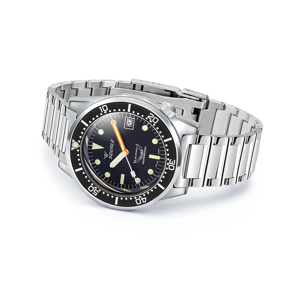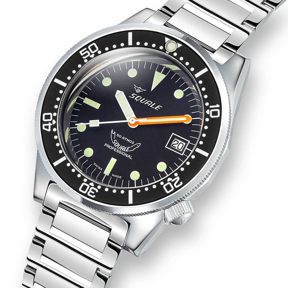 Το Squale 1521 Classic Bracelet 1521CL.SQ20L είναι ένα Καταδυτικό – σπορ ρολόι ελβετικής κατασκευής. Κάσα από ανοξείδωτο ατσάλι με ατσάλινο μπρασελέ. περιστρεφόμενη στεφάνη και μαύρο καντράν με φωτεινούς δείκτες.