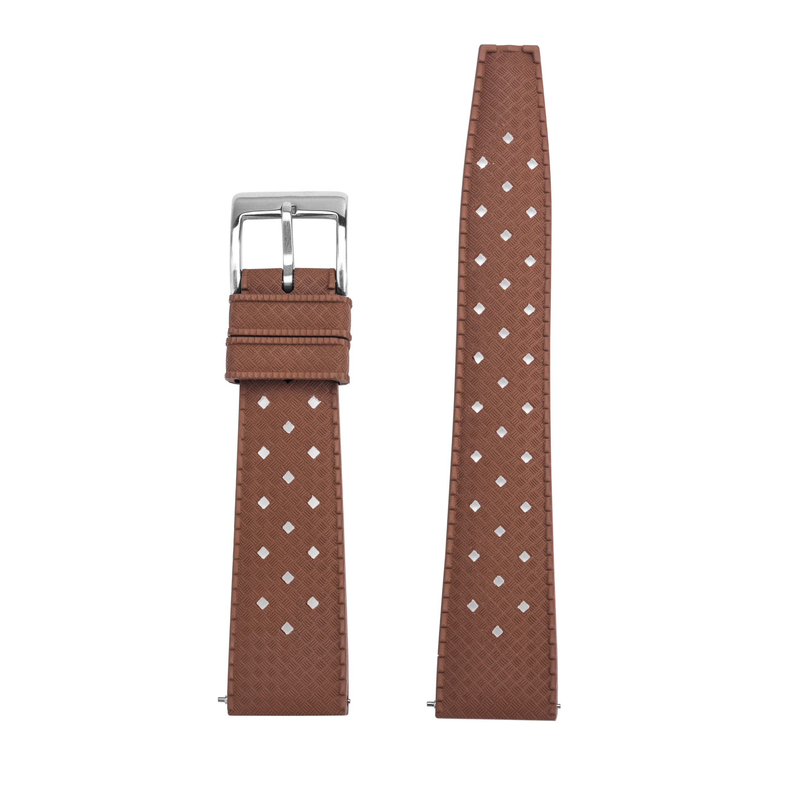 Καφέ Tropical style λουράκι με σύστημα γρήγορης απελευθέρωσης (Quick Release), κατασκευασμένο από φθοροελαστομερές (FKM) καουτσούκ, διαθέσιμο στα μεγέθη 20mm και 22mm.